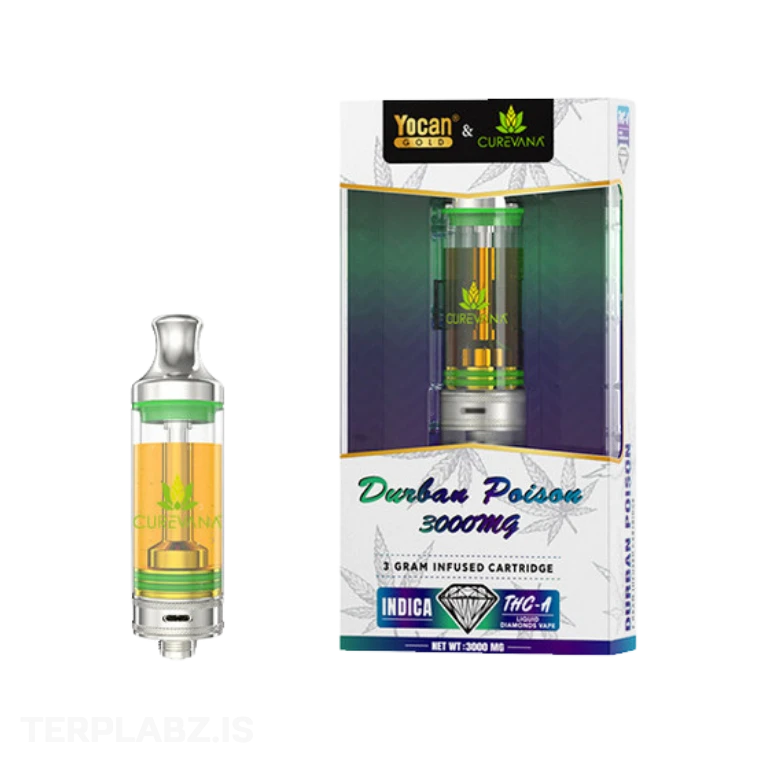 Curevana Durban Poison is a bold, no-nonsense 3g indica cart made for real THC users. Expect earthy pine flavors, a calming full-body high, and no synthetic taste.