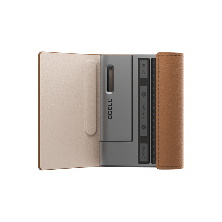 The mini battery includes an oil view window so you can monitor every drop. The metallic housing and rounded edges feel solid without bulk and the dock cradles the battery for safe carry between sessions.