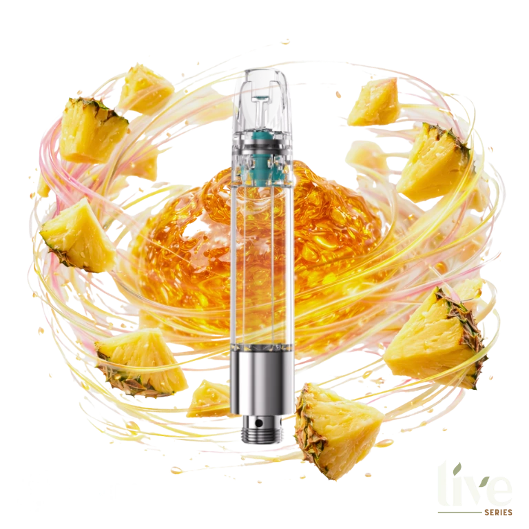 Fresh citrus leads—think pink grapefruit and pineapple rind—woven with tropical haze, green herbs, and a clean pine-resin tail. Diesel notes arrive late and subtle, adding warmth and structure. Vapor is dry-crisp, not sugary, with a lingering citrus-pine echo.