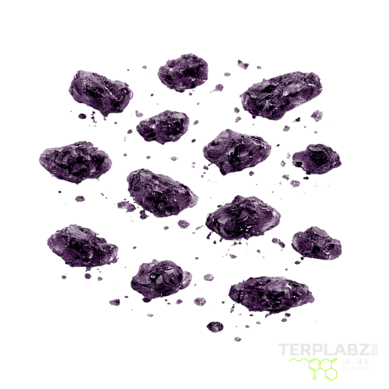 The deep purple coloration is not typical for pure cannabinoids in isolation and is generally the result of minor compound interactions, oxidation states, or trace elements present during the crystallization phase. Rather than indicating impurity, it reflects the specific conditions under which the material was formed and stabilized.