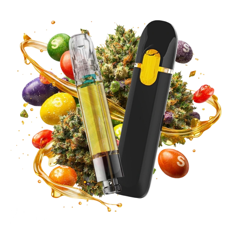 The flavor opens with a familiar candy-like fruitiness that recalls rainbow sweets, ripe berries, and soft citrus sugar, but it never drifts into a sharp or artificial direction. Underneath that sweetness sits a green, slightly earthy cannabis tone that gives the profile depth and authenticity. The vapor feels smooth and rounded, with a bright first impression and a gently herbal finish. It is sweet, but still smooth and natural.